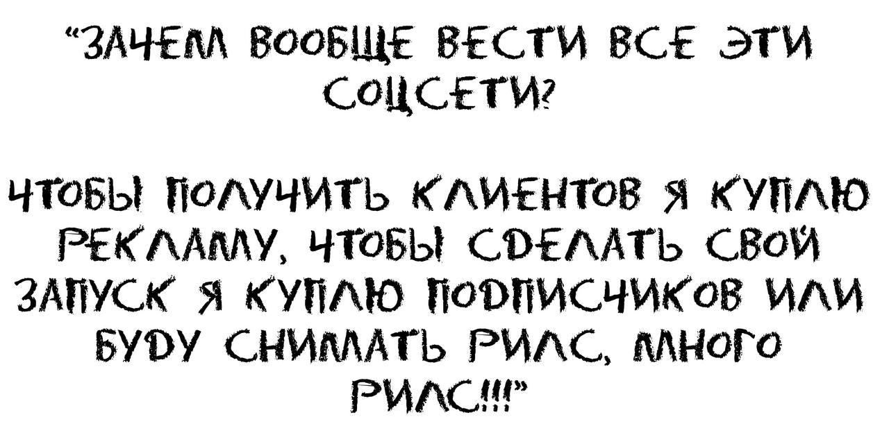 Бесконечный бег на длинную дистанцию, в котором нет финиша. Сегодня ты создаешь контент, завтра ты создаешь контент, и послезавтра... и это нужно делать КАЖДЫЙ БОЖИЙ ДЕНЬ…ВНОВЬ И ВНОВЬ.