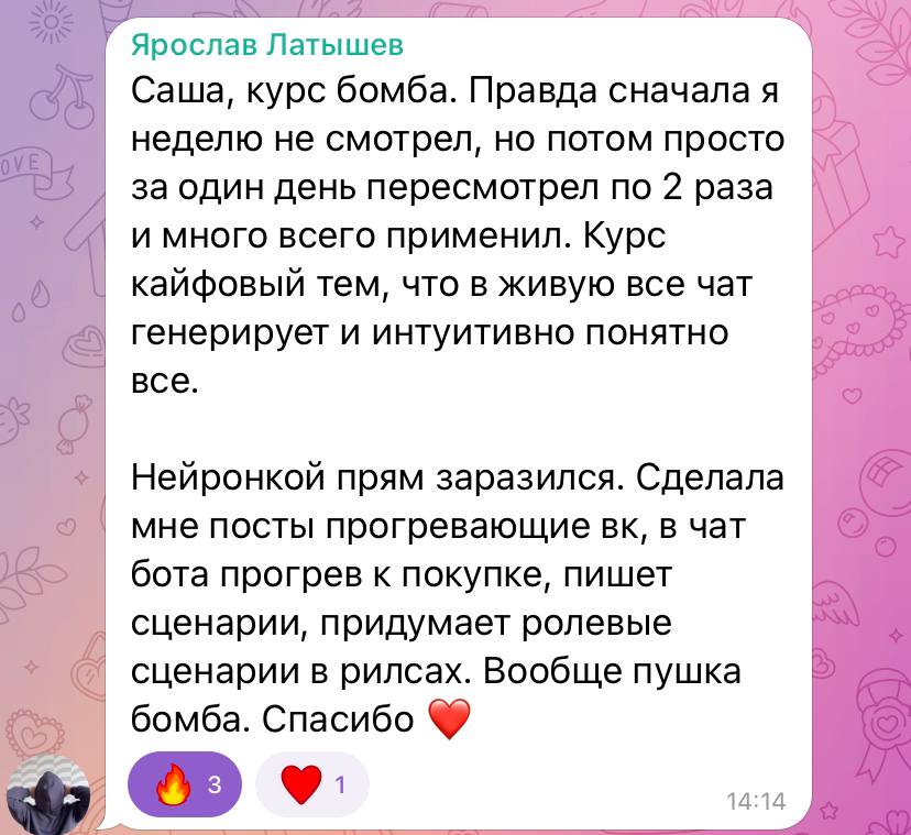 Но я понимаю, что сегодня каждый второй эксперт пытается запустить курс по нейросетям и навариться. И это нормально. Трендовая ниша, также было с курсами по WB и крипте.