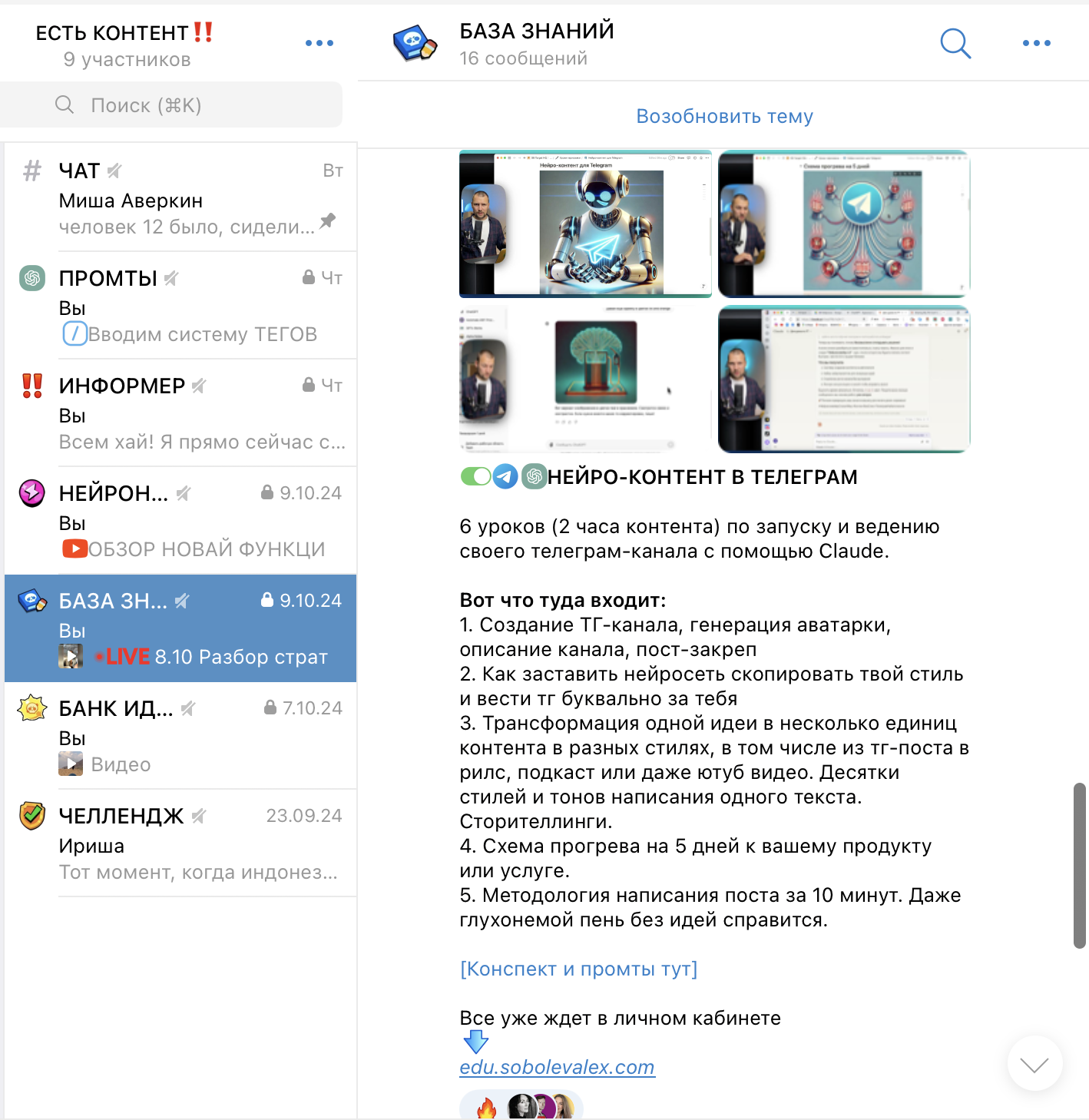 ✈️Нейро-контент в телеграм 6 уроков по запуску и ведению своего телеграм-канала с помощью Claude.