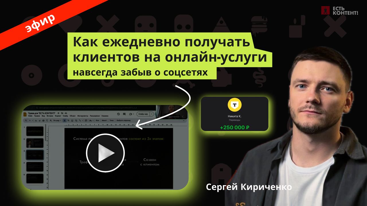 ⚪️Как ежедневно получать клиентов на онлайн-услуги, навсегда забыв о соцсетях. Сергея Кириченко