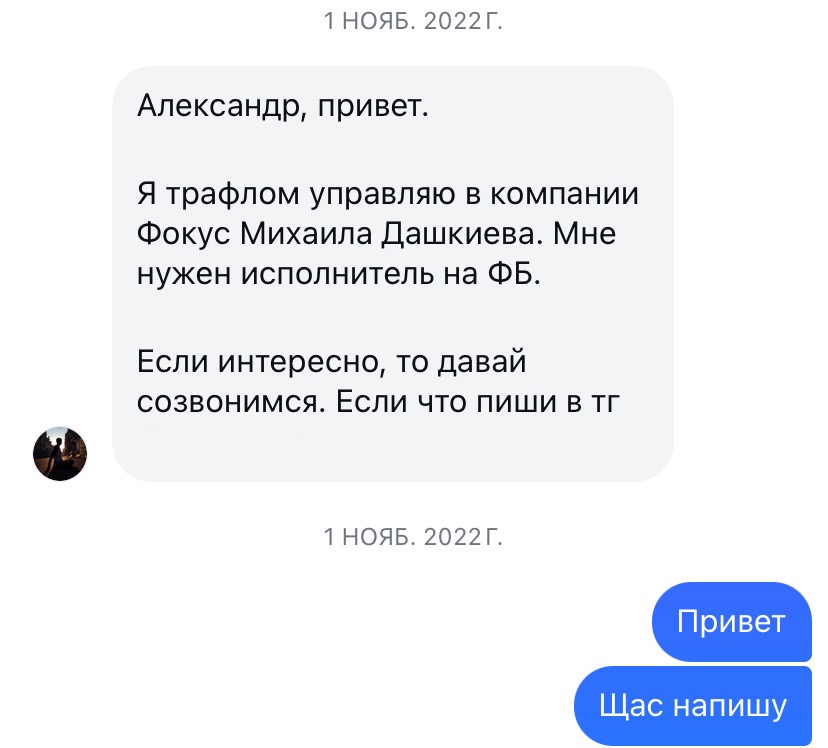 И как-то мне приходит вот такое сообщение от некоего Игоря. Он делает мне предложение, от которого невозможно отказаться.