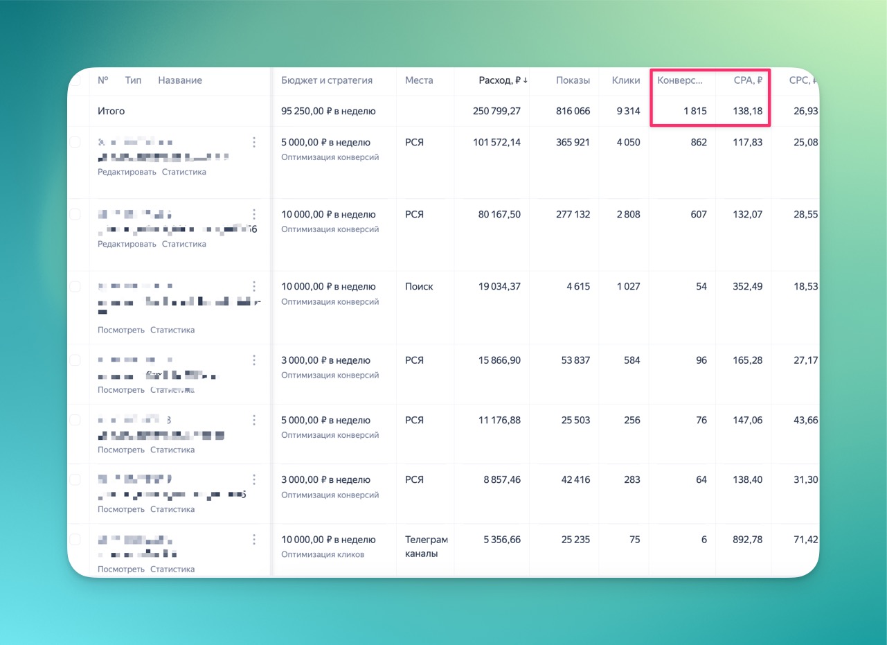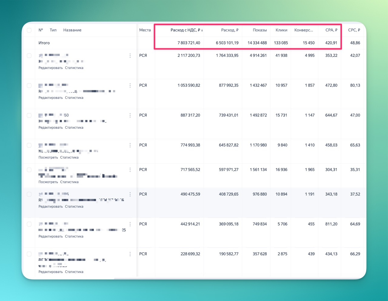 Со всеми клиентами у меня подписано NDA и я дорожу нашим сотрудничеством, покажу цифры по нишам, без привязки к проекту. Надеюсь, мне не оторвут голову ;)